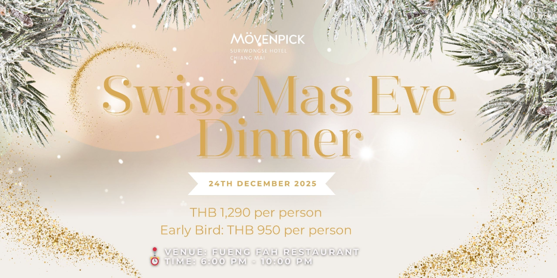 ฉลองค่ำคืน คริสต์มาสอีฟ ในบรรยากาศสุดพิเศษที่ Mövenpick Suriwongse Hotel Chiang Mai กับงาน Swiss Mas Eve Dinner ดินเนอร์สุดหรูที่จัดขึ้นในวันที่ อังคารที่ 24 ธันวาคม 2568 ณ ห้องอาหารเฟื่องฟ้า