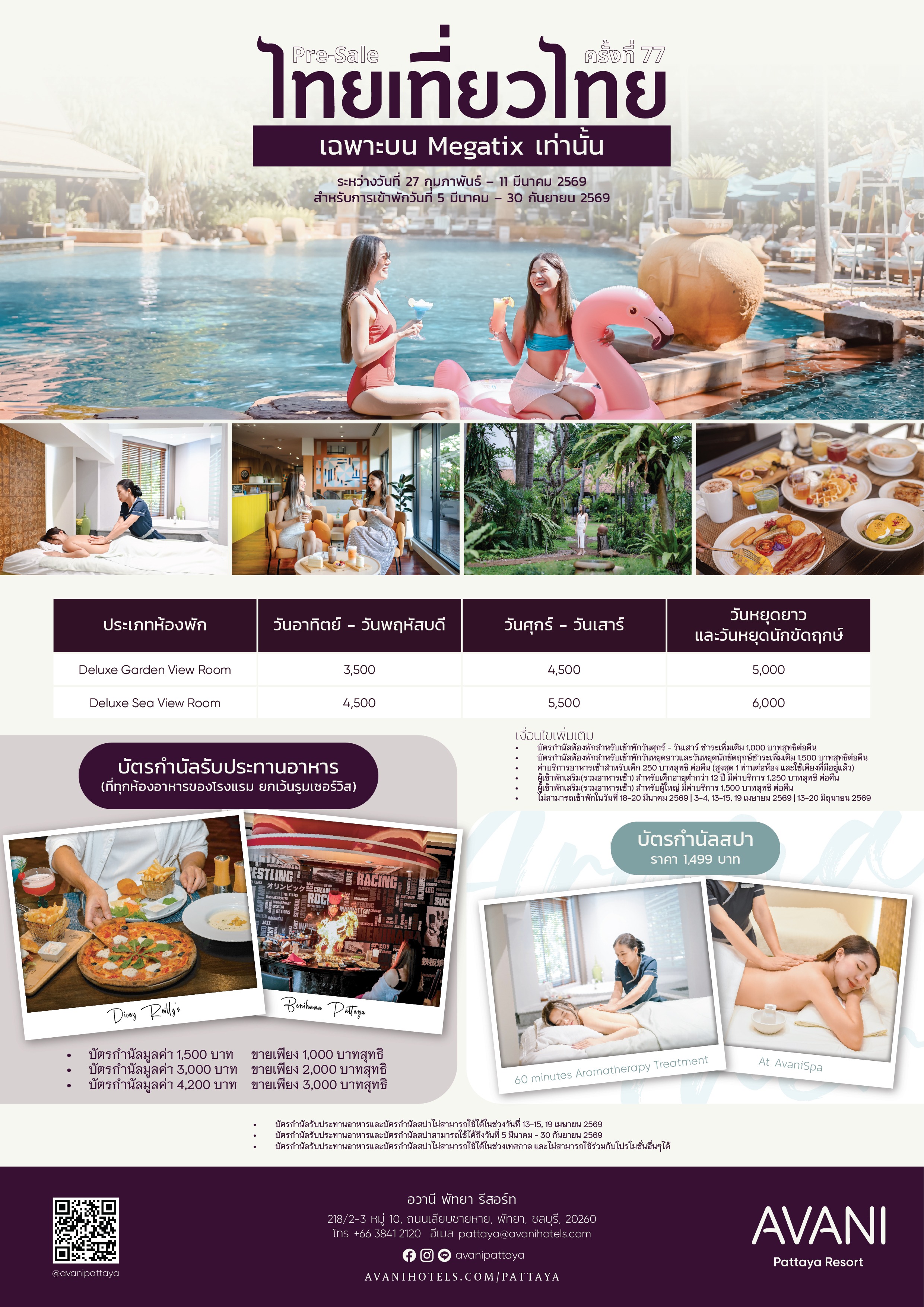 Reservations should be made in advance through Avani Pattaya Resort Reservations team at: