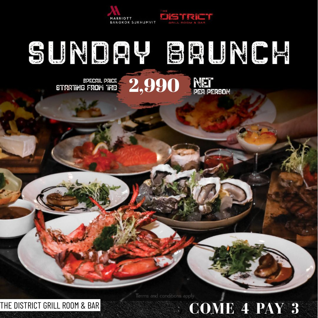 - Voucher สามารถใช้ได้กับ SUNDAY BRUNCH ที่ The District Grill Room and Bar ในทุกวันอาทิตย์ ตั้งแต่เวลา 11:30 น. - 14:30 น.