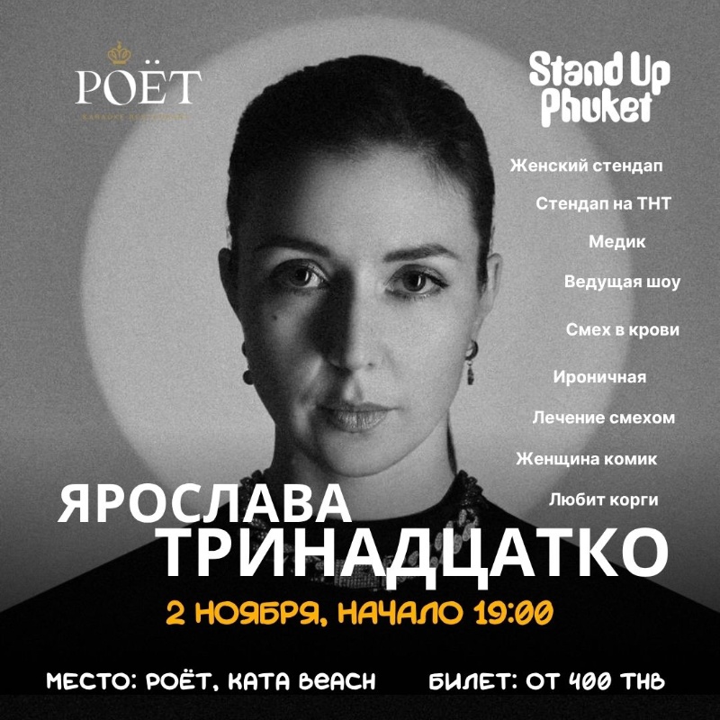 ПХУКЕТ 2 НОЯБРЯ 2025: ЯРОСЛАВА ТРИНАДЦАТКО С СОЛЬНЫМ СТЕНДАП-КОНЦЕРТОМ