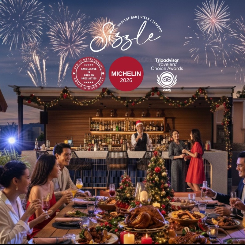 Savor an À La Carte Festive spread at Michelin Guide recognized Sizzle Rooftop, featuring Fine de Claire Oyster N°2, delicate Hamachi Tiradito, succulent lobsters, and roast turkey from the carving station. Meat lovers can enjoy grilled Okayama Tenderloin and our signature Golden Black Angus Tomahawk, open-air seating, and panoramic sea views for the ultimate Christmas indulgence