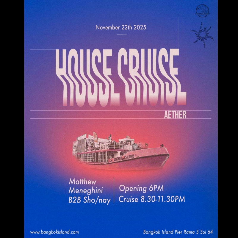 House music has always been built on community — people coming together, sharing energy, and creating something bigger than themselves. Aether was born from that exact spirit. These three DJs met in Bangkok, coming from the UK, Italy, and Kenya, and quickly realized they shared the same vision: to create a warm, inclusive House community in the city. House Cruise is the next step in that journey.