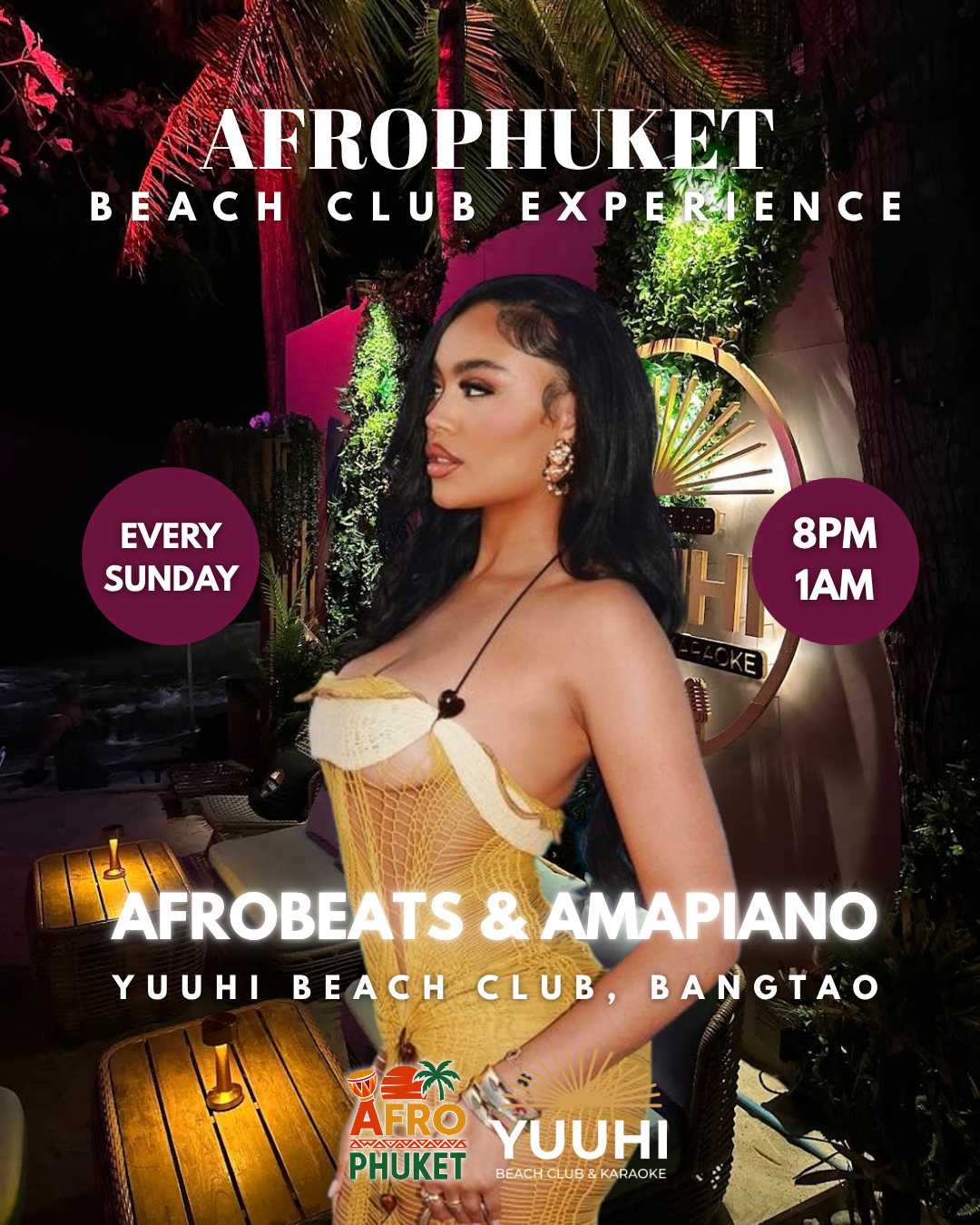 Join us every Sunday for an unforgettable Afro Beach Club experience, in the Island best beach club, where top Djs bring the heat with the best of Afrobeat, Amapiano, Hip Hop, R&B and more📀