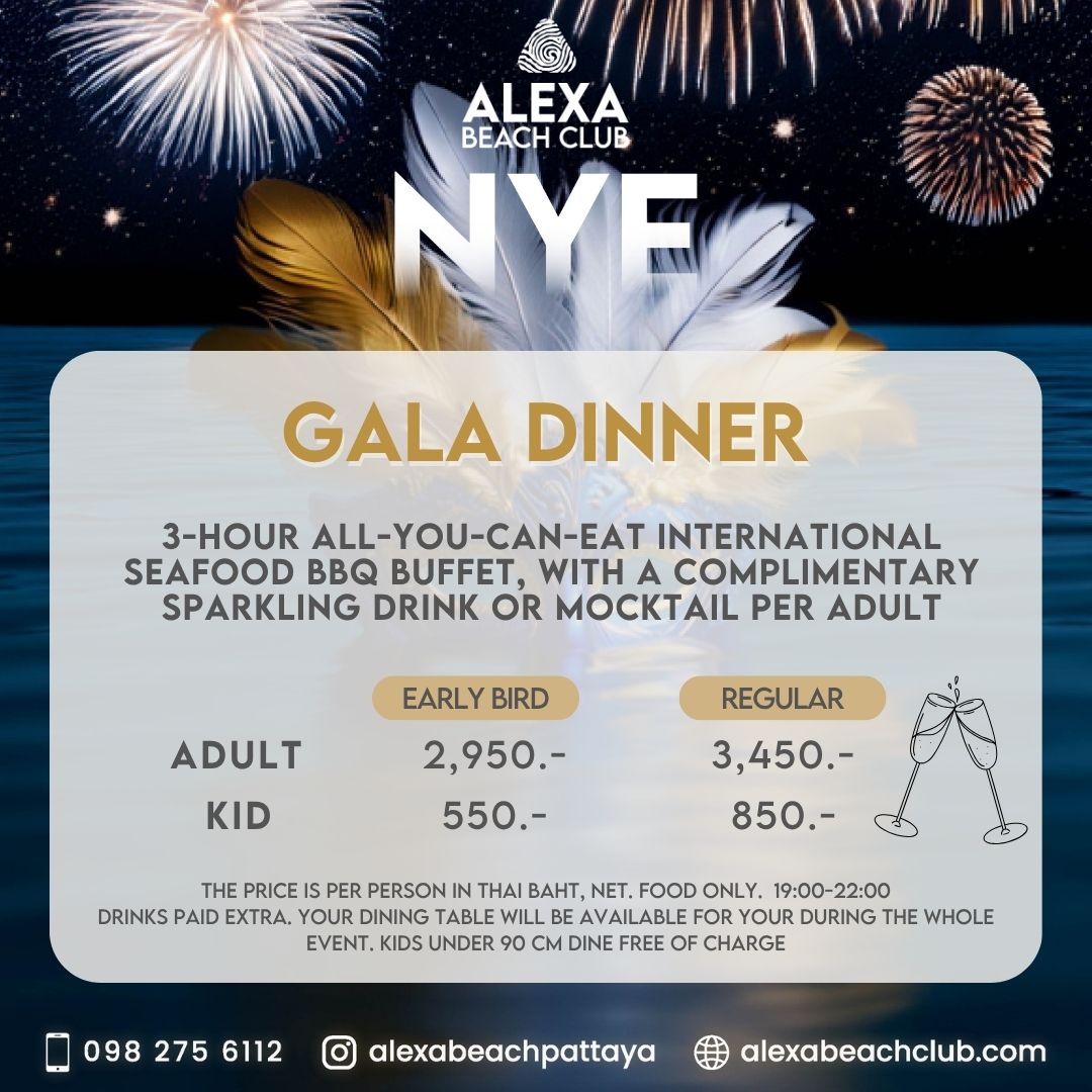 Celebrate New Year’s Eve at Pattaya's most exclusive beach club, Alexa Beach Club Pattaya.