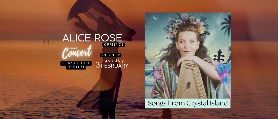 Come enjoy these songs -written here on Koh Phangan and soon to be released on Alice Rose’s forthcoming EP, Songs From Crystal Island.