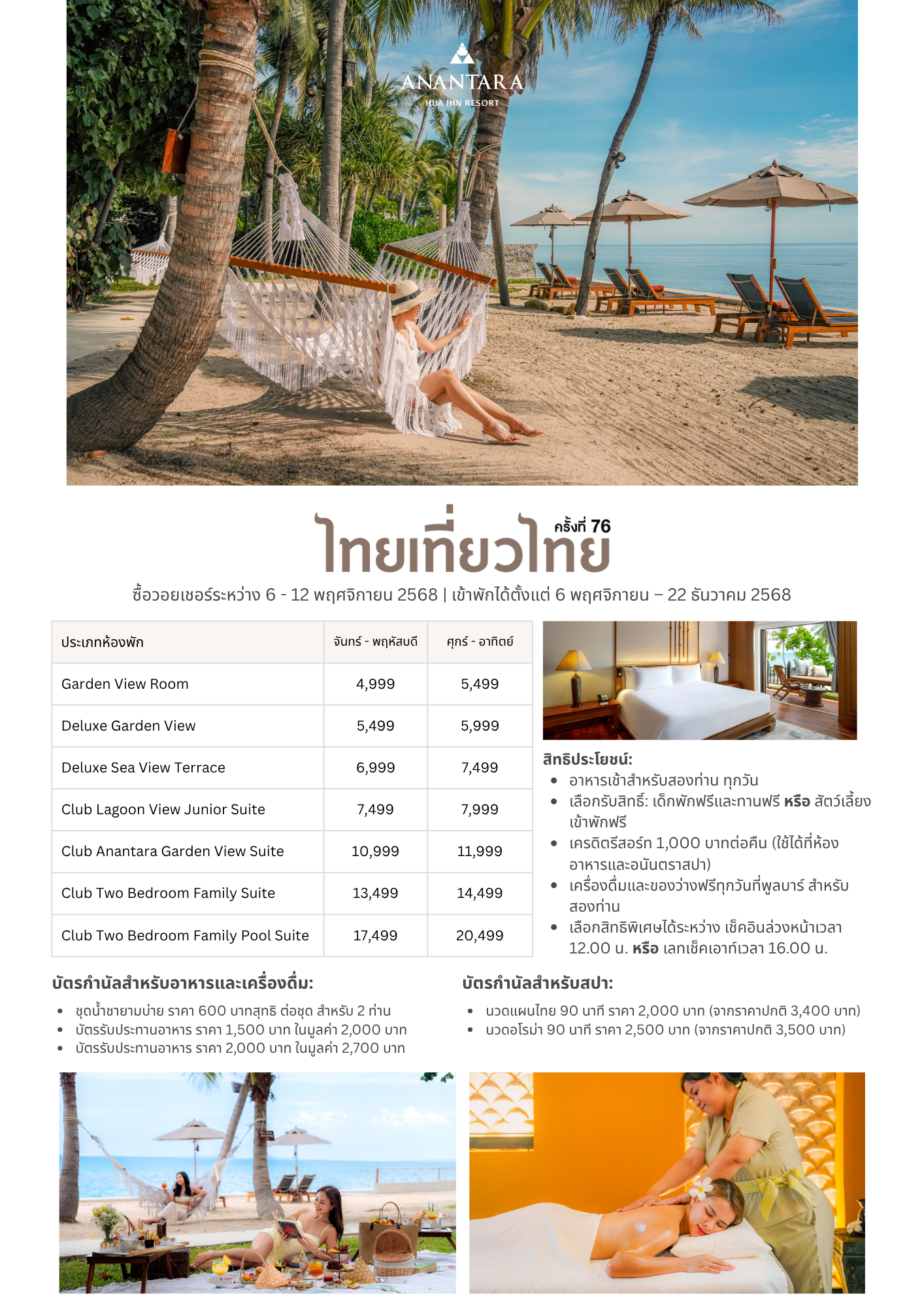 Anantara Hua Hin | 76th Thai Tiew Thai - อนันตรา หัวหิน รีสอร์ท | งานไทยเที่ยวไทย ครั้งที่ 76