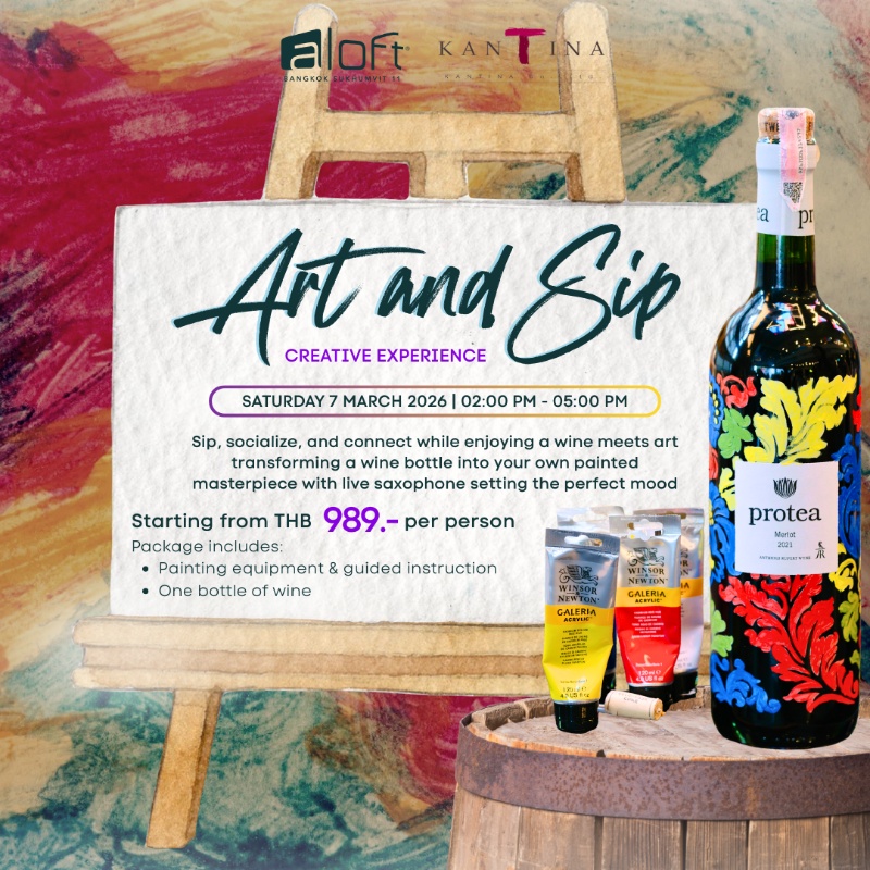 Aloft Bangkok Sukhumvit 11, the city’s creative playground, invites you to uncorking your creativity at the Art & Sip Wine Bottle Painting Workshop. Celebrate fresh beginnings with a fun and inspiring evening as you design and paint your own wine bottle masterpiece, guided step by step by a professional artist. Sip, paint, and toast to the year ahead while live saxophone melodies set the perfect festive mood for your artistic flow.