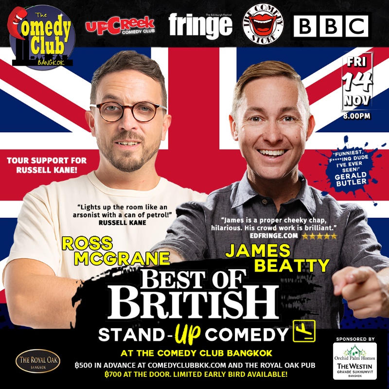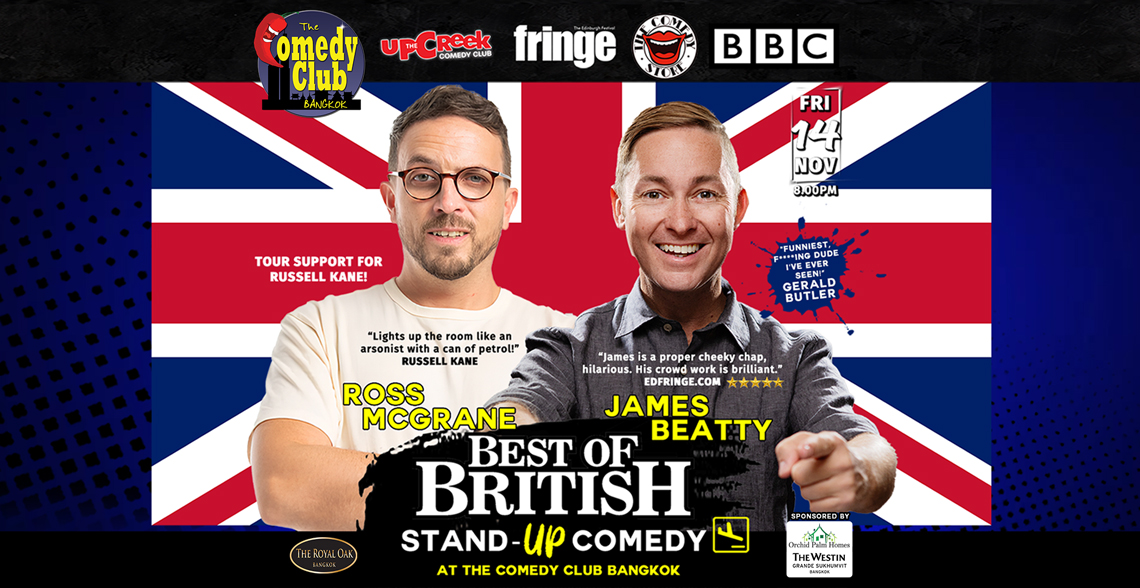 From the UK to Bangkok, The Comedy Club Bangkok proudly presents another round of ‘BEST OF BRITISH’ comedy with ROSS MCGRANE AND JAMES BEATTY!