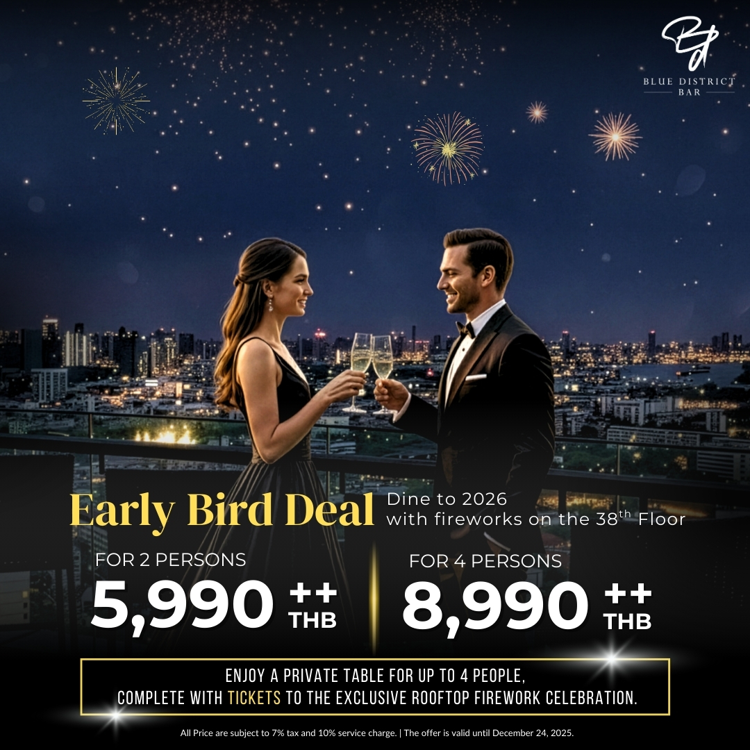 and witness the spectacular fireworks display from our 38th-floor vantage point and exclusive Rooftop (11:00 PM β 01:00 AM).