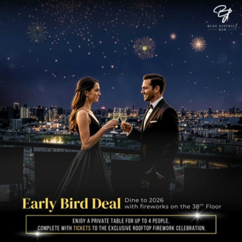 Blue District Bar Dine to 2026 with fireworks on the 38th Floor