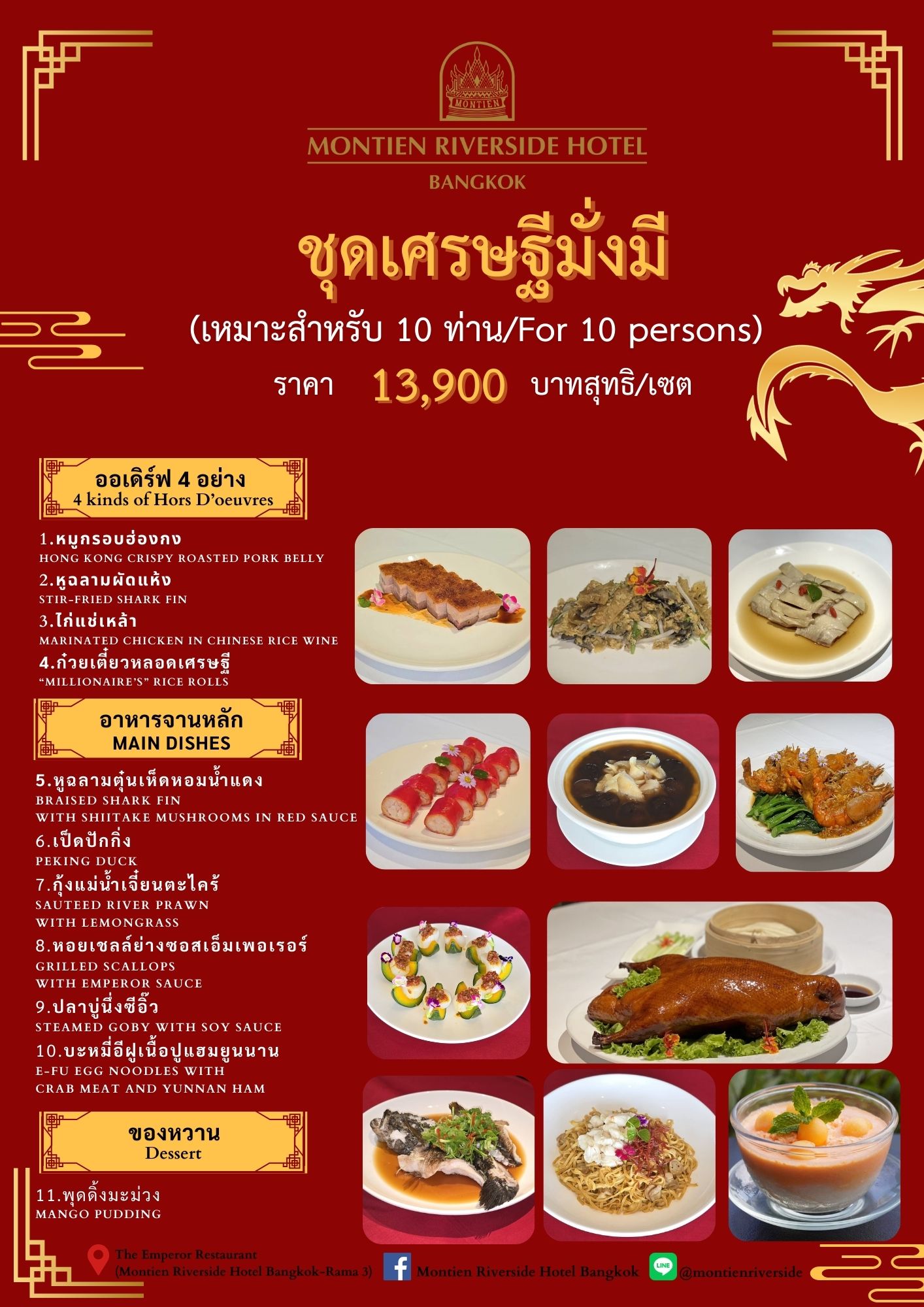 💰 ราคาเพียง 13,900 บาทสุทธิ / เซต (สำหรับ 10 ท่าน)