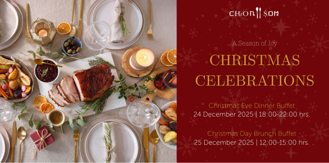 ð ðŧâĻ Let the season of joy fill you and your loved ones with happiness, delicious food, and the warm atmosphere everyone has been waiting for Chon Son All Day Dining invites you and your family to indulge in a festive feast with our Christmas Eve Dinner Buffet and Christmas Day Brunch Buffet. Enjoy special holiday dishes such as herb-roasted chicken, honey-glazed ham, grilled river prawns with spicy dipping sauce, fresh seafood, sushi, sashimi, and creative desserts crafted by our talented chefs. ð