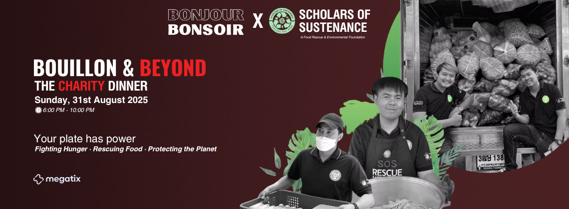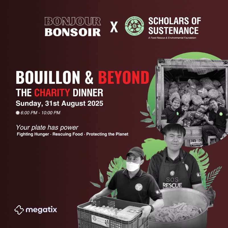 This month, we are proud to support Scholars of Sustenance (SOS) โ a food rescue foundation dedicated to fighting hunger and reducing food waste across Southeast Asia. By joining us, every plate you enjoy helps deliver rescued food to communities in need while protecting our environment.