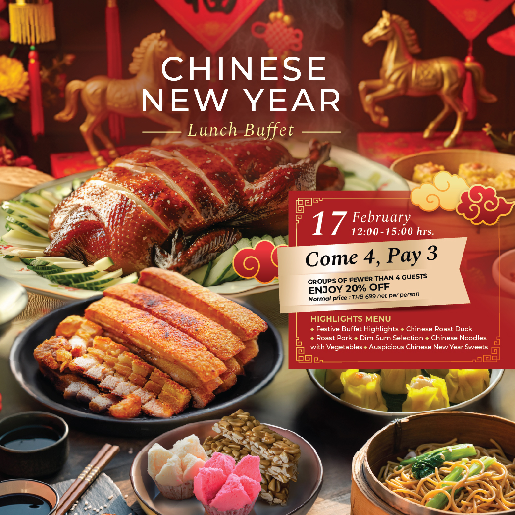 Mark your calendars for February 17, 2026, at 12:00 PM, as Food Exchange at Novotel Bangkok Sukhumvit 4, Ring in the Year of Abundance & Prosperity during our Chinese New Year International Buffet Lunch! ✨🎊 Whether you’re gathering with family, friends, or colleagues, this is the mid-day celebration you simply can’t miss.