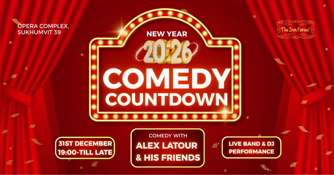 Ring in 2026 with a night packed full of laughter, live music, and pure Iron Fairies charm! Join us on Wednesday, December 31st at the iconic Iron Fairies (Soi 39, Opera Complex) for a New Year’s Eve celebration that brings together stand-up comedy, great vibes, and a thumping live band to close out the year in style.