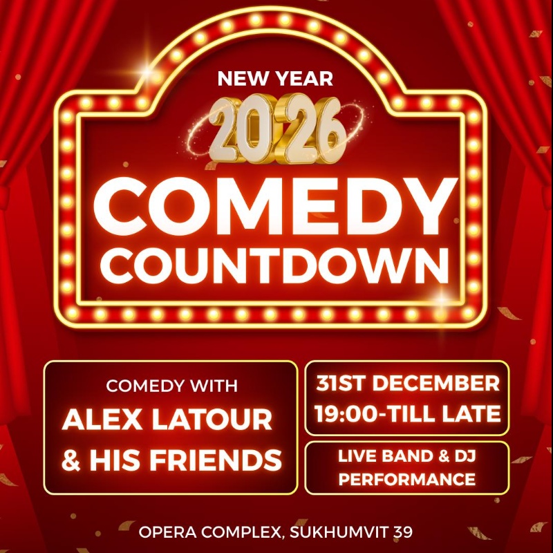 Start the night with a globe-spanning comedy showcase featuring some of Bangkok’s best international comics, each bringing their own flavour from around the world. The night will be hosted by Alex Latour from The Thaiger, keeping the energy sharp, fun, and unpredictable.