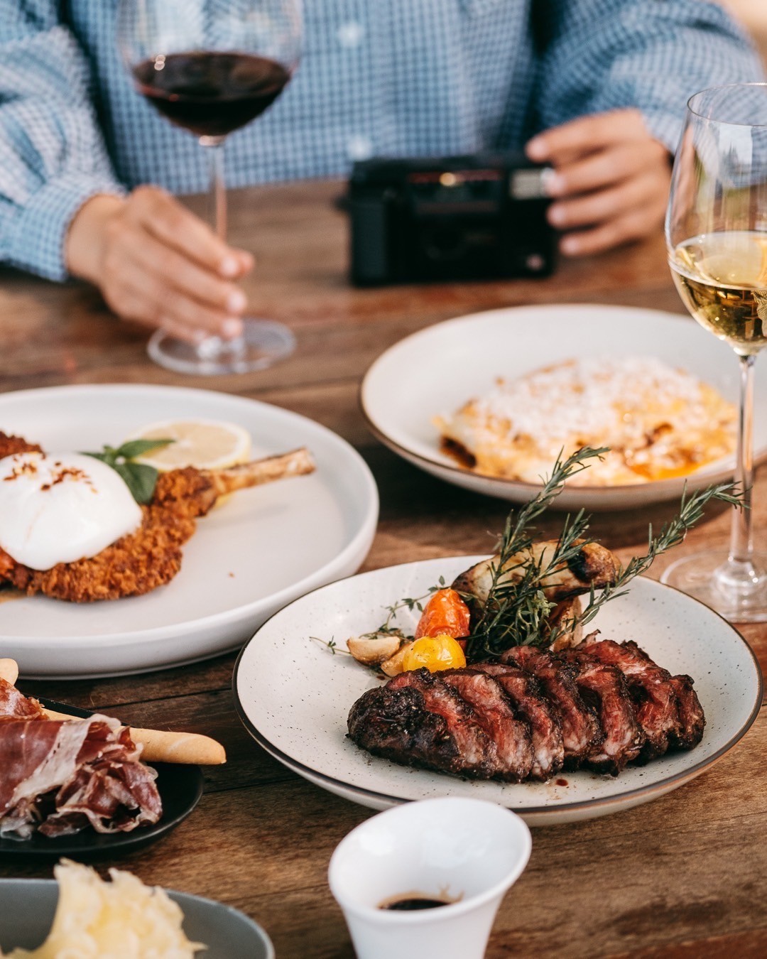 Imagine a private table set directly within the vineyard rows as the evening sun casts a golden glow over the mountains. This authentic, soul-soothing experience features a curated menu prepared by Liberta Trattoria, bringing the heart of rustic Italian-inspired flavors to the beauty of the outdoors.