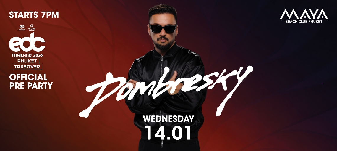 Maya is proud to be the OFFICIAL pre-party of EDC Thailand 2026, and there’s no better way to kick off the year than Dombresky’s signature vibe under the stars.