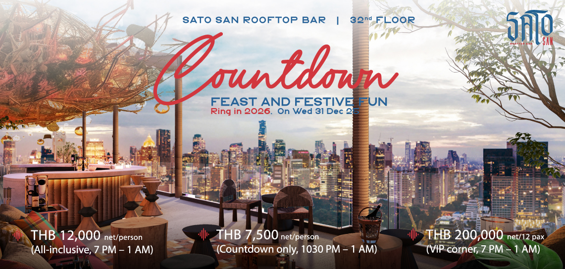 *การเข้างานบนชั้นดาดฟ้าสาโท ซัง รูฟท็อป บาร์จำกัดเฉพาะผู้มีอายุ 20 ปีขึ้นไปเท่านั้น*