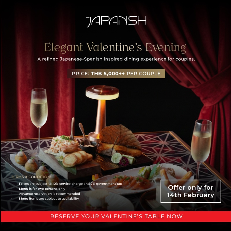 Celebrate love with an Elegant Valentine’s Evening at Japanish, featuring a specially curated Japanese–Spanish fusion dining experience in a romantic setting.