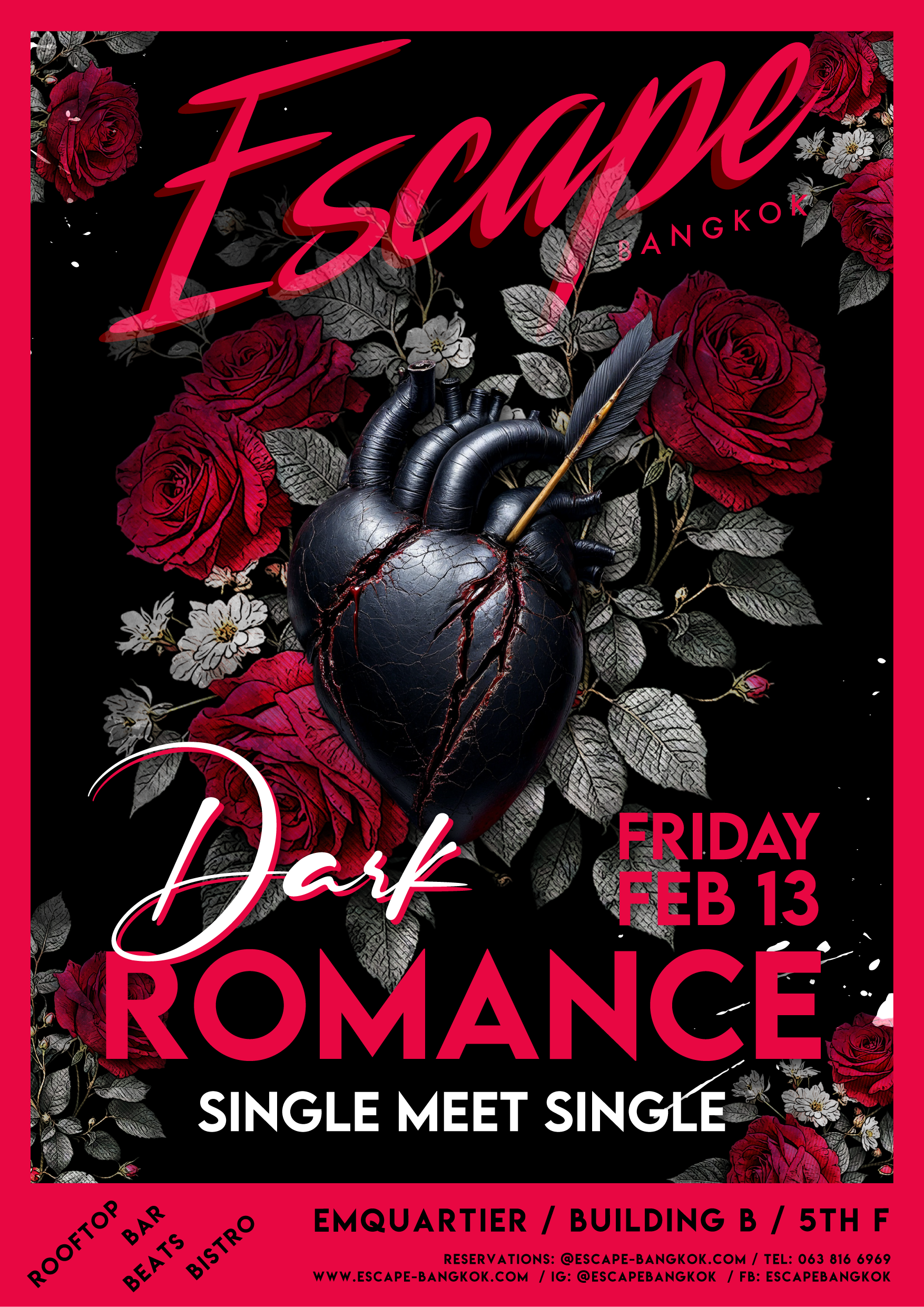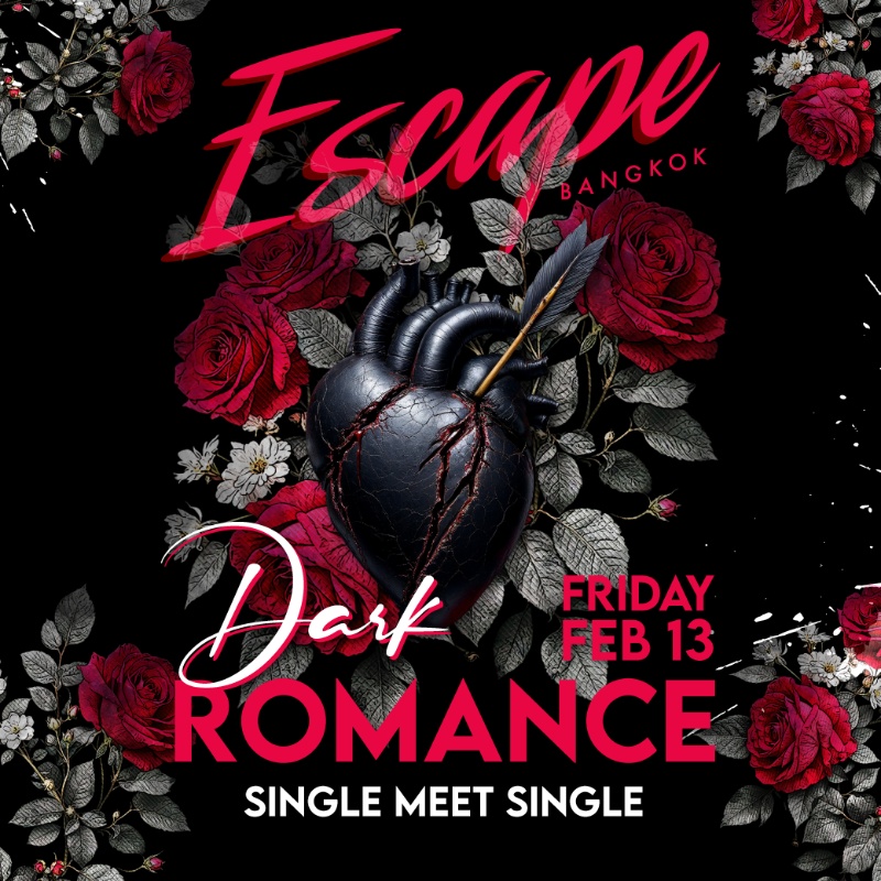 Dark Romance is a curated Anti-Valentine social experience created exclusively for single guests. Designed to move away from traditional Valentine’s Day clichés, the event focuses on natural social interaction, networking, and casual engagement within the Escape Bangkok nightlife environment.