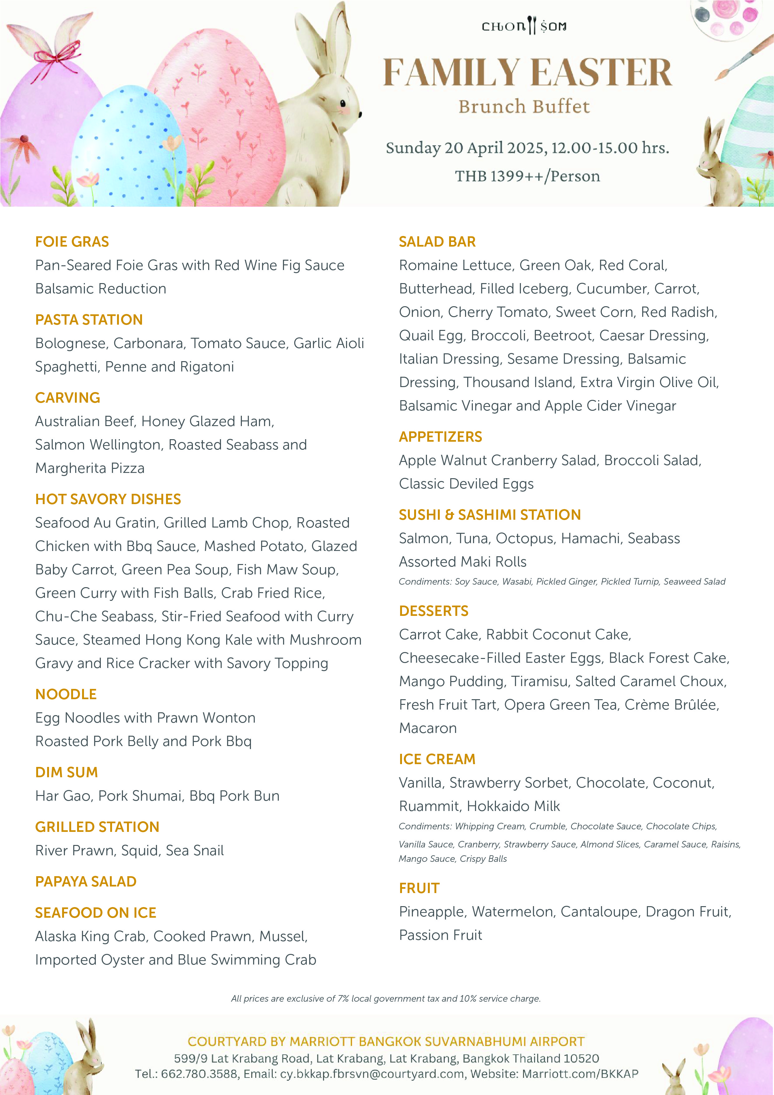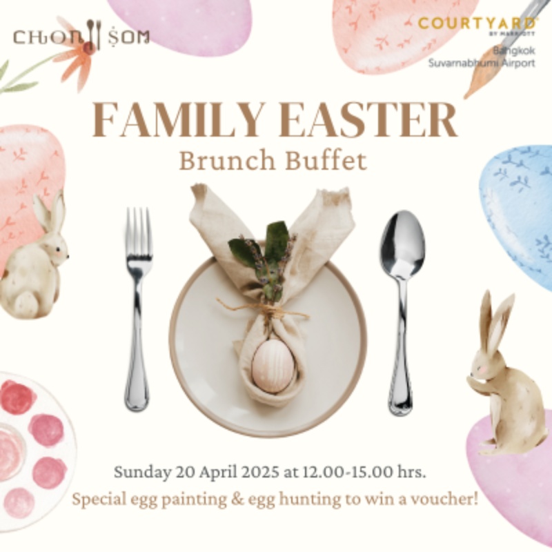 - Egg Hunting to Win the Prize!✨The child who collects the most eggs in the given time will win a voucher for a lunch or dinner buffet for two at Chon Som All Day Dining, valued at 2,000 THB.