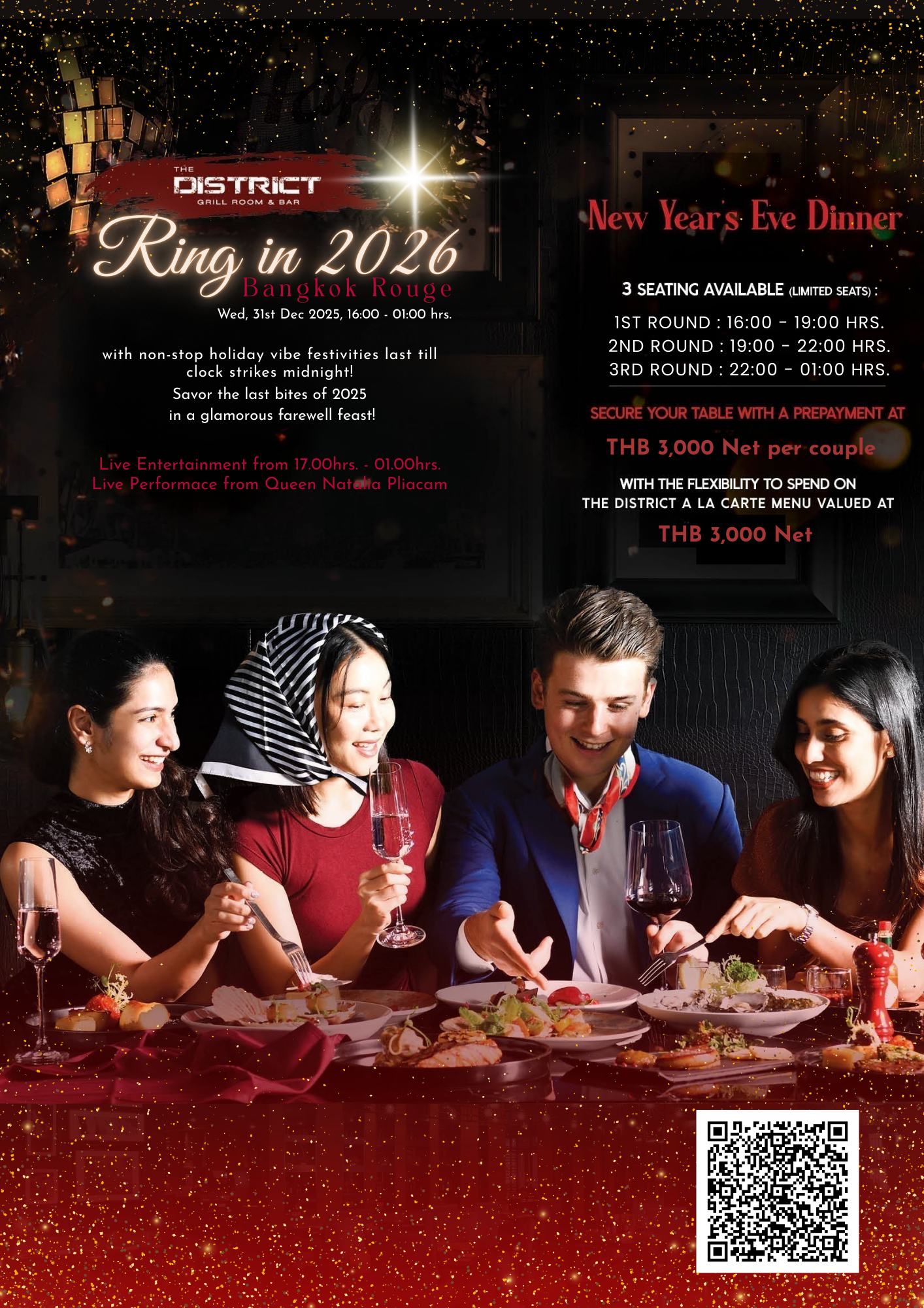 - Dinnder voucher is valid on December 31, 2025 from 4:00 pm till late at The District Grill Room & Bar.