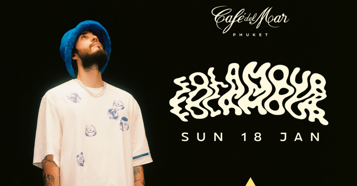 On Sun, 18 JAN, Folamour makes his Phuket debut at Café del Mar. The French multi-instrumentalist and producer has played some of the world's most iconic stages including Tomorrowland, Glastonbury, and Coachella, amassing over 170M streams worldwide. Folamour has become one of France's most celebrated artists.