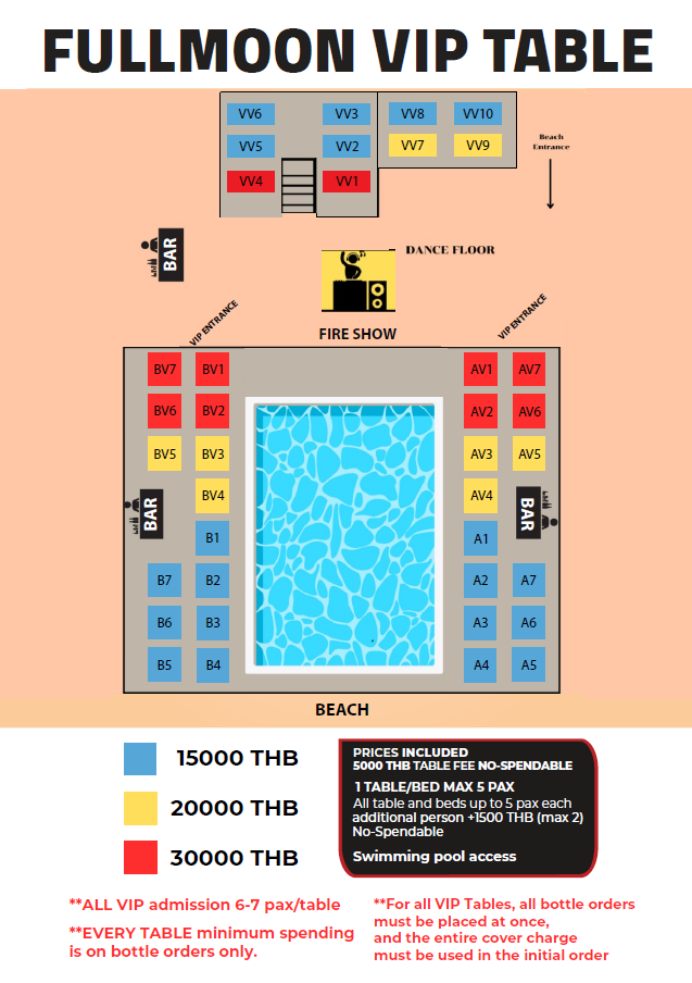 - For VIP Tables bookings, all drinks and bottle orders must be placed at once, and the entire cover charge must be used in the initial order.