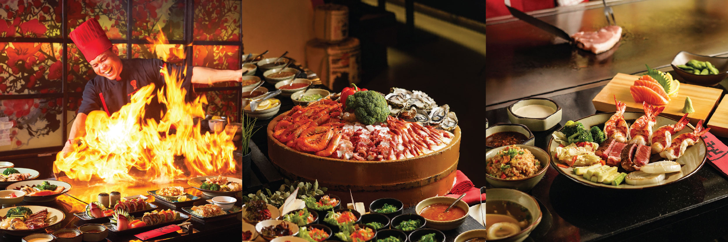 Enjoy freshly grilled teppanyaki prepared live before your eyes, along with sushi, sashimi, and delightful desserts.