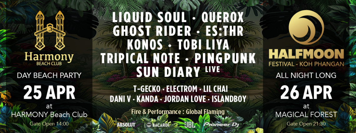 25th April 2026 – Harmony Beach Club, Koh Phangan (Pre-Halfmoon Party)