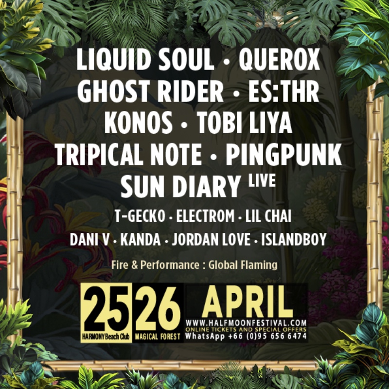 Halfmoon Festival returns for a two-day celebration of music, human connection, and the true island spirit. Experience both sides of Koh Phangan — A day to night beachfront celebration at Harmony Beach Club and the legendary all-night open air festival deep within the Magic Forest.