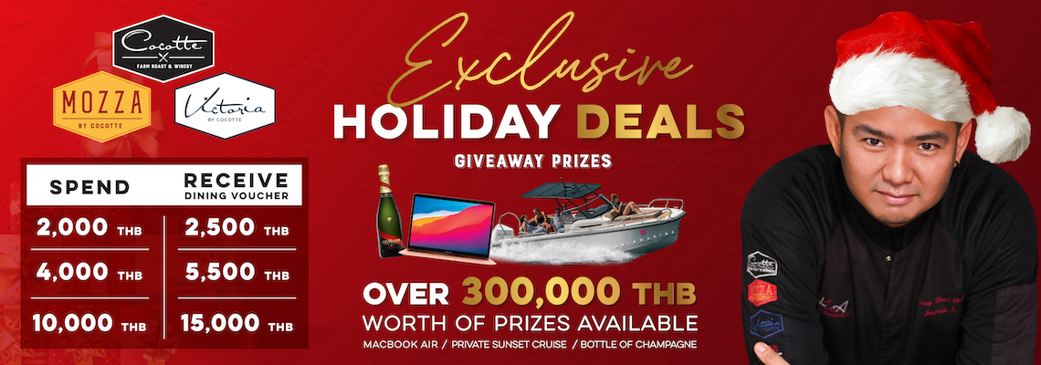 This holiday season, we're offering you the gift of love - with great deals on our exclusive dining vouchers that can be enjoyed at all of our much-loved Bangkok restaurants!