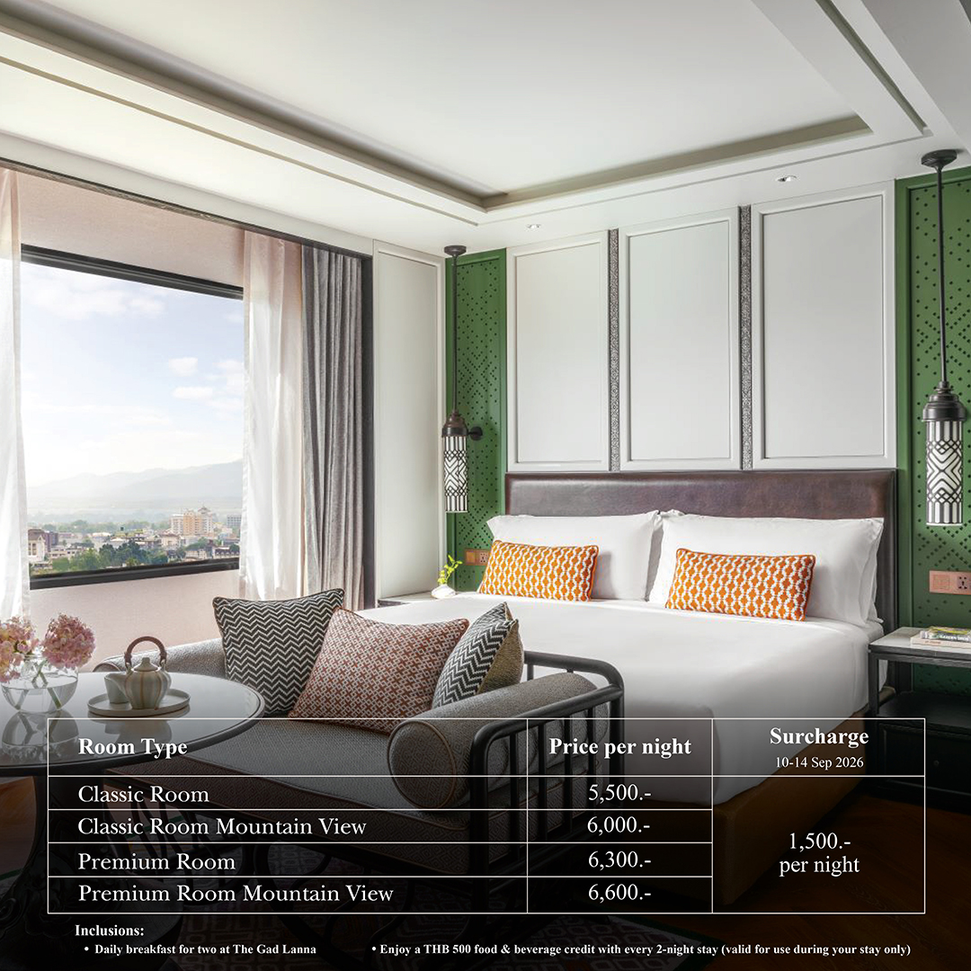 • 10 - 14 September 2026 are at THB 1,500 net per room per night