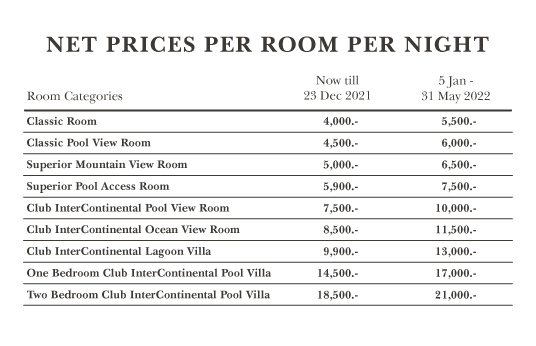 - InterContinental Phuket Resort reserves the right to change any terms and conditions at any time without prior notice.