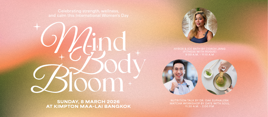 ทุกกิจกรรมจัดขึ้นภายในโรงแรมคิมป์ตัน มาลัย กรุงเทพฯ สิทธิ์แบบ first-come, first-served ฟรีสำหรับแขกผู้หญิงทุกท่านเปิดรับลงทะเบียนล่วงหน้าถึงวันพฤหัสบดีที่ 5 มีนาคม 2569 สอบถามข้อมูลเพิ่มเติมได้ที่ [email protected]