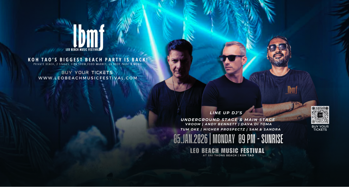 - 9:00 PM – Until Sunrise : Beach Party in an unique location on Koh Tao @ Sai Thong Beach