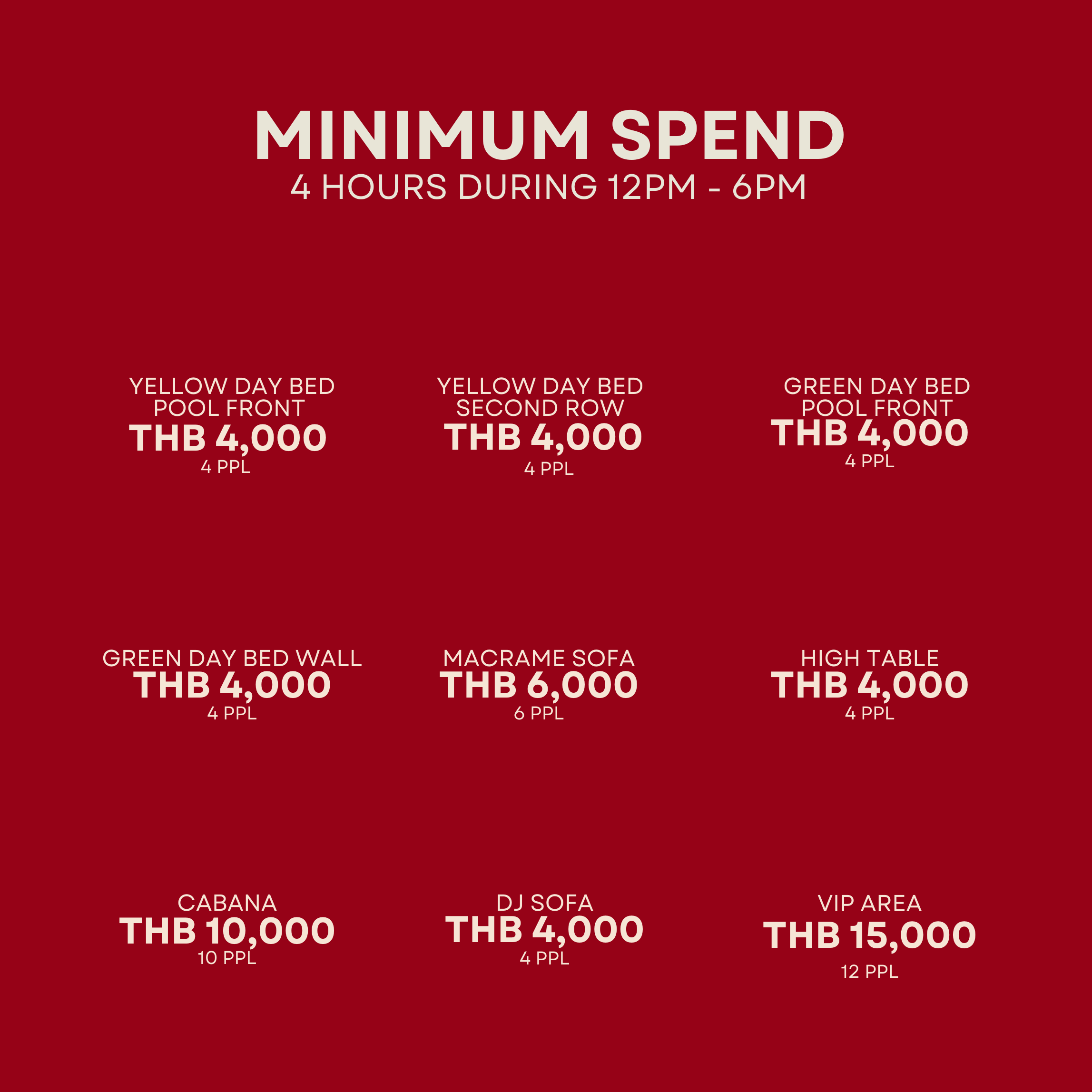 • Bookings at the pool party will be held for 15 minutes from the time of reservation. after that we are regret to inform you that we have to resell your table.
