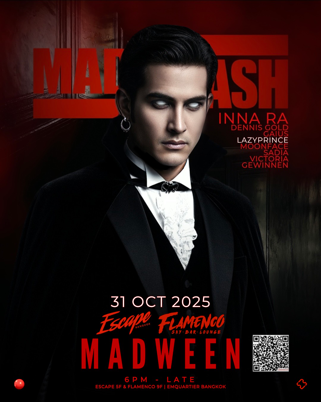 The journey begins at Escape Bangkok, a rooftop kingdom transformed into a haunted carnival of lights and sound. As the evening unfolds, indulge in our exclusive Dracula Dinnerâa feast as darkly decadent as the night itself. When midnight strikes, the ritual deepens at Flamenco Bangkok, where the second stage awakens in a storm of velvet shadows, irresistible beats, and untamed energy.