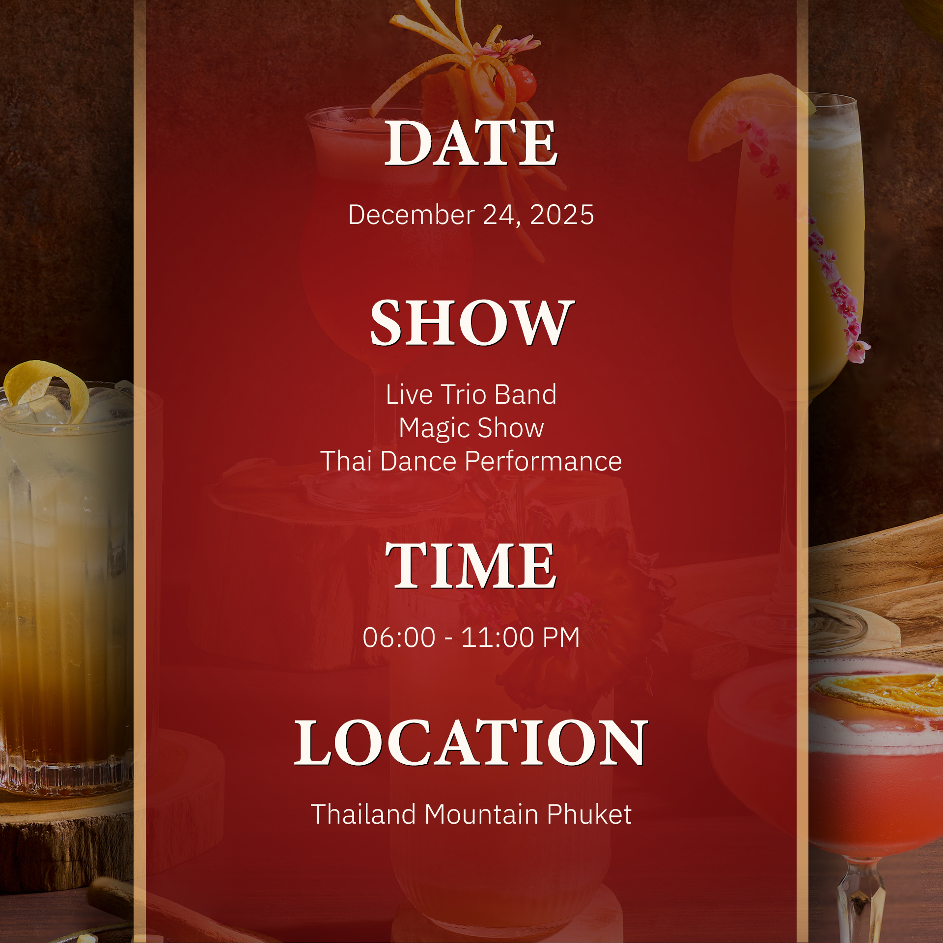 Join us for an elegant Christmas Eve Dinner on December 24, 2025, at Thailand Mountain Phuket.