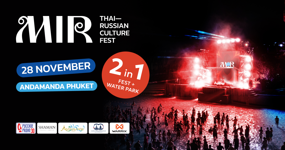 The first festival of contemporary Thai–Russian culture at Phuket’s largest water park, Andamanda! Enjoy star performers from Thailand and Russia on one stage, a dance floor right in the pool, and food courts featuring Thai and Russian favorites. Kids can join in with fun water attractions and entertainment.