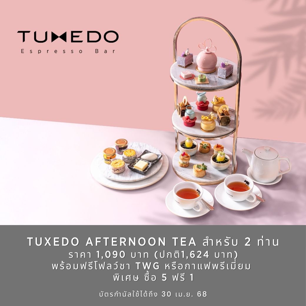 - The Voucher is valid for Tuxedo Afternoon Tea set for 2 persons at Tuxedo Espresso Bar from 12:00 pm - 4:30 pm.