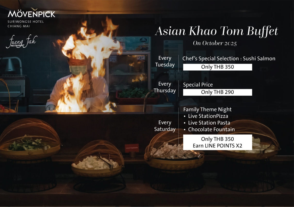 Tonight, in the heart of Night Bazaar, you can discover the legend of "Kao Tom Buffet" at the Celestial Restaurant in the Movenpick Surawongse, Chiang Mai.