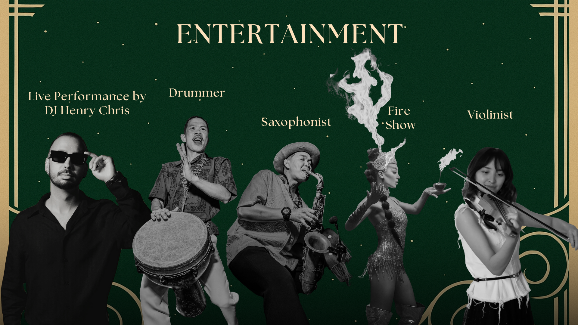 Entertainment: Violin | Live DJ | Dance Performers | Surprise Happenings