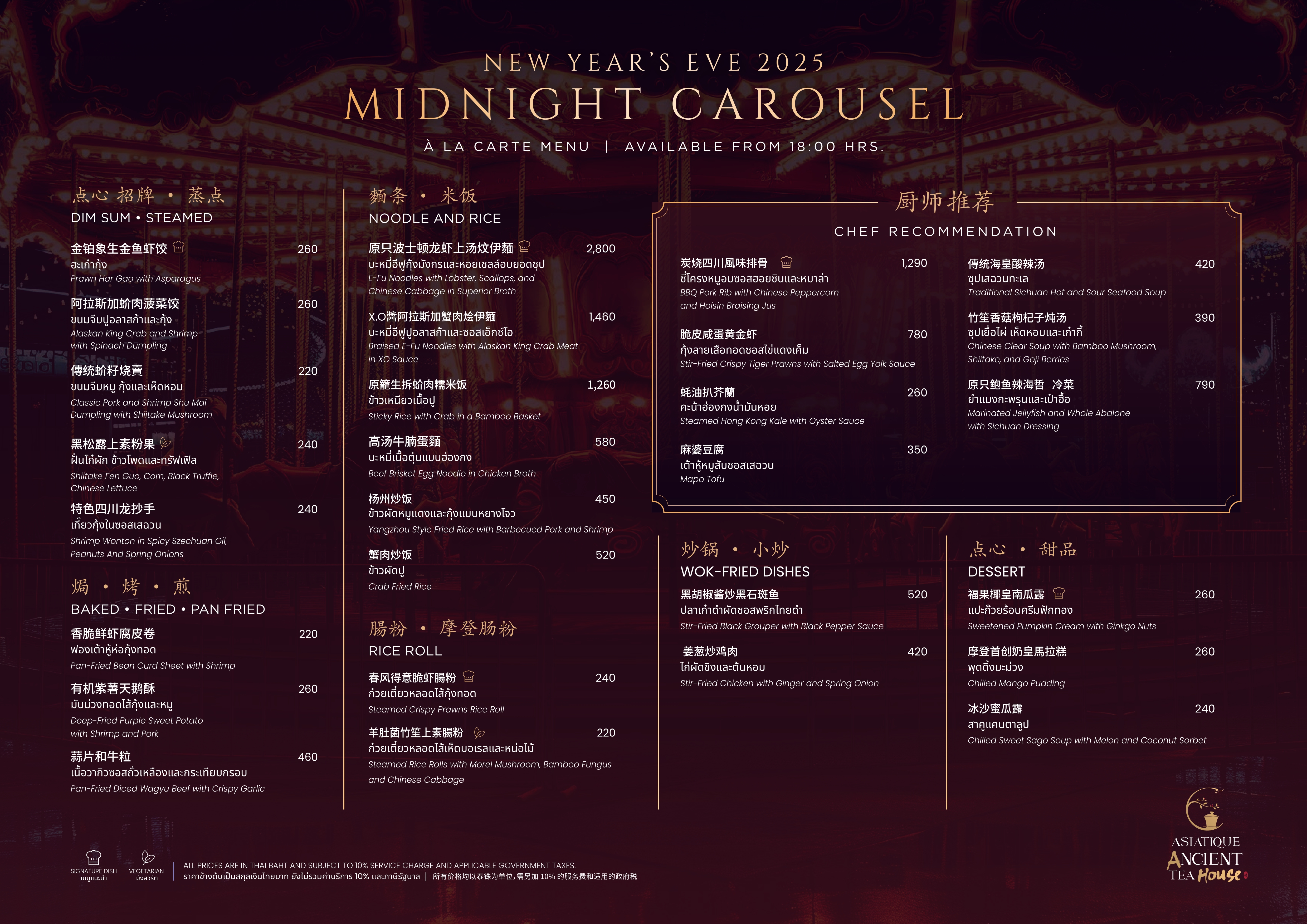Step into a whimsical celebration at Asiatique Ancient Tea House as we welcome 2026 with our enchanting Midnight Carousel. Enjoy a curated à la carte menu, exclusive festive dishes, and vintage charm throughout the night.