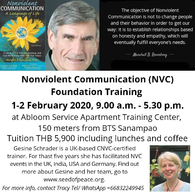 Gesine Schrader is a UK-based CNVC-certified trainer. For the past five years she has facilitated NVC events in the UK, India, USA and Germany. Find out more about Gesine and her team, go to www.seedofpeace.org.
