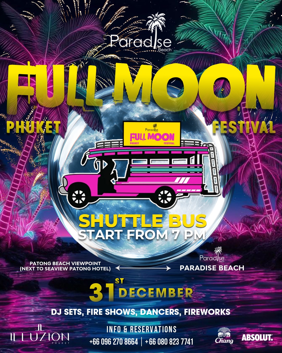 Welcome to the 2026 NEW YEAR'S EVE - FULL MOON FESTIVAL at Paradise Beach Phuket 🌕✨