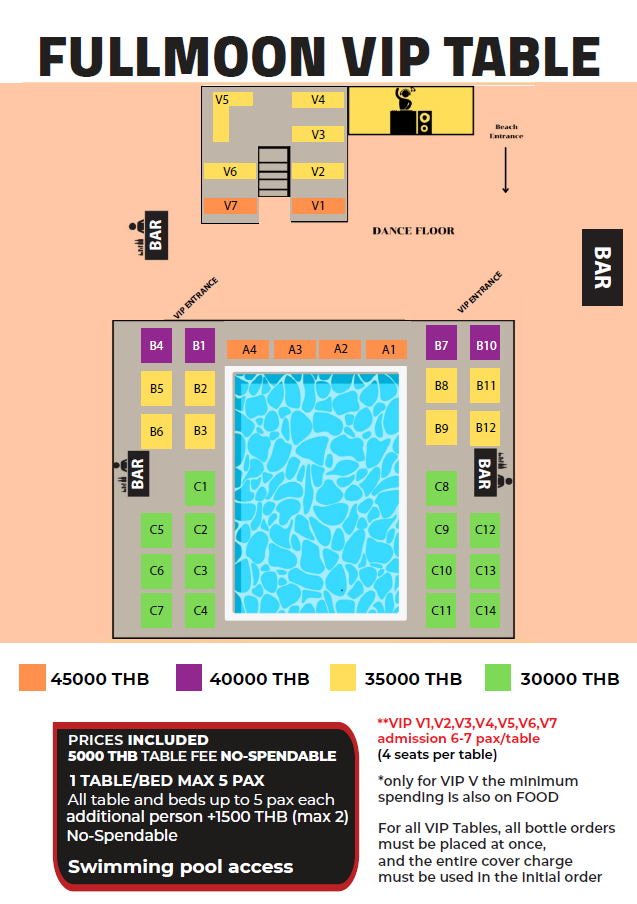 - For VIP Tables bookings, all drinks and bottle orders must be placed at once, and the entire cover charge must be used in the initial order.