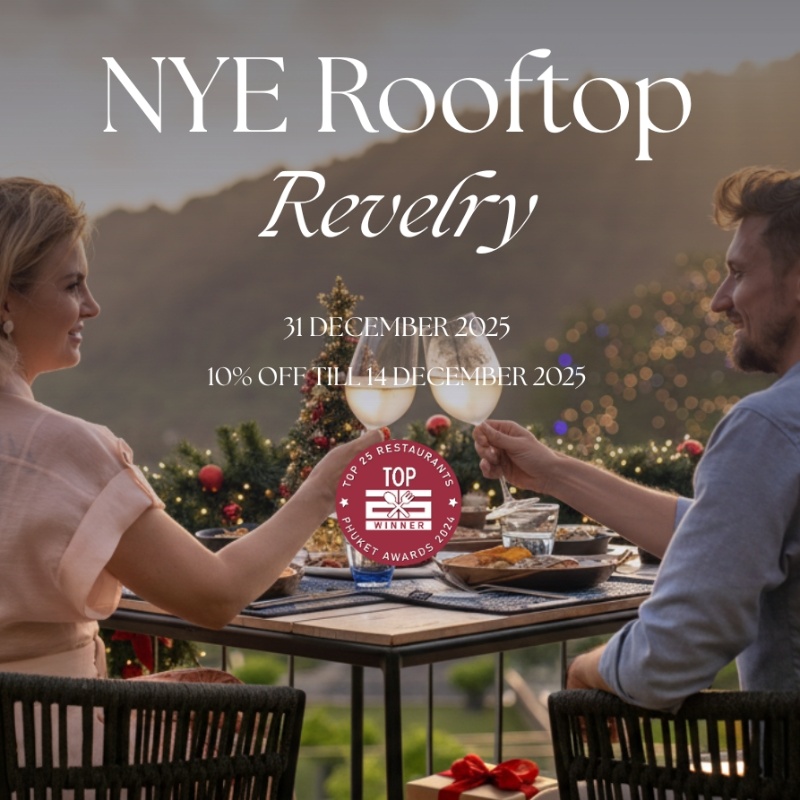 Celebrate New Year’s Eve at Michelin Guide Recognized and Phuket’s most breathtaking rooftop. Enjoy Gillardeau Oyster N°2, Blue Lobster Tarte, Poached Turbot, Beef Wellington, and a decadent Valrhona Chocolate Special, DJ beats, and sunset ocean views for a night of fine dining and festive celebration under the stars.