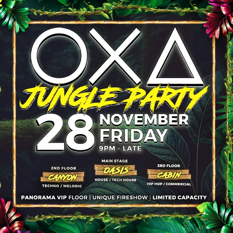 Come early, stay late, and make unforgettable memories at OXA. Dive into an evening where the rhythm of the jungle takes you through the night. See you under the stars! 🌴🌌